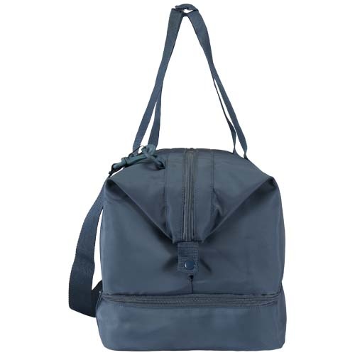 De reistas is gemaakt van 290D twill polyester met een zachte gebreide achterkant en gevoerd met RPET 210D/PU, waardoor hij zowel duurzaam als stevig is. Het hoofdcompartiment bevat een ruim vak met rits waarin je een paspoort, pennen en sleutels kunt opbergen, samen met twee interne ritsvakken en dubbele waterfleshouders.