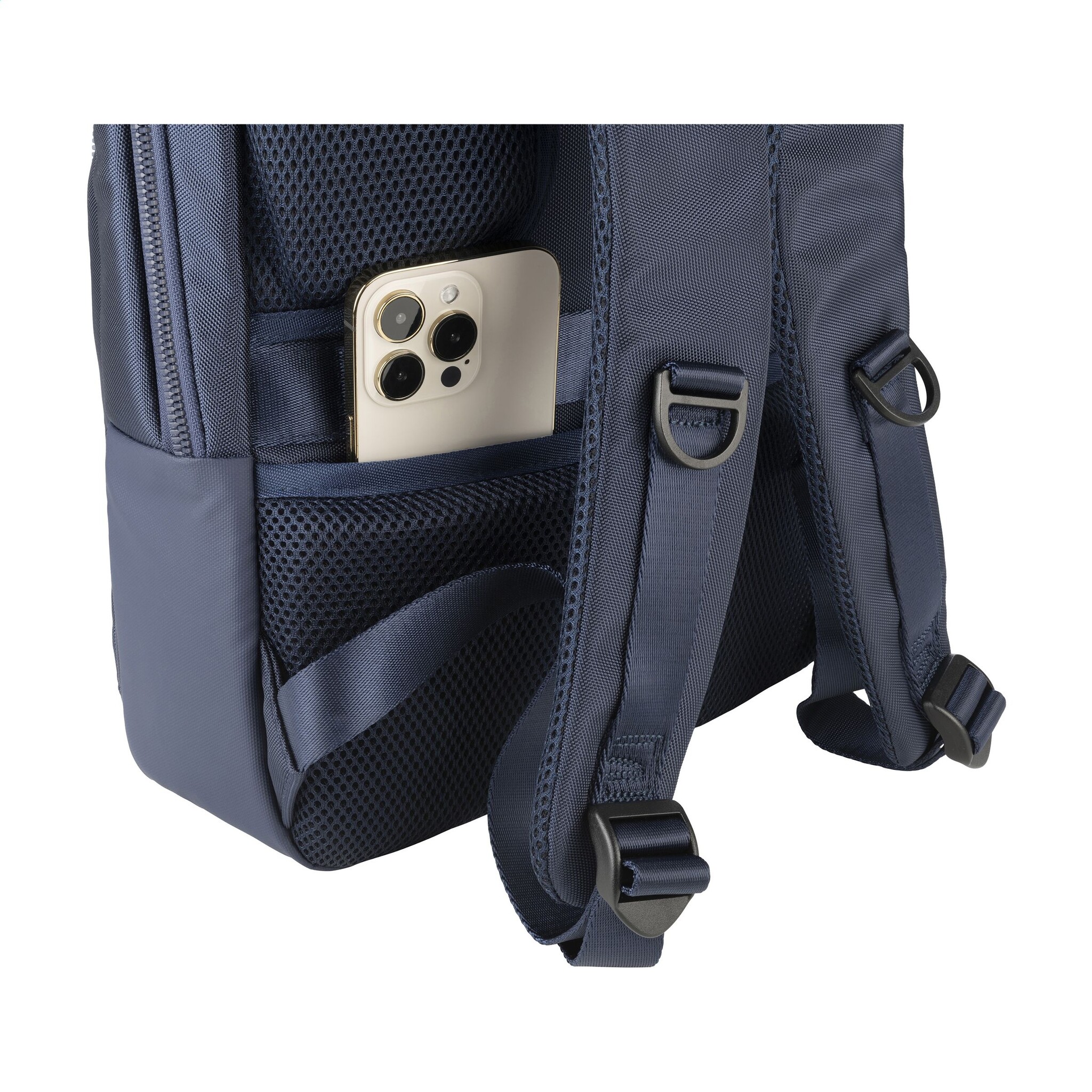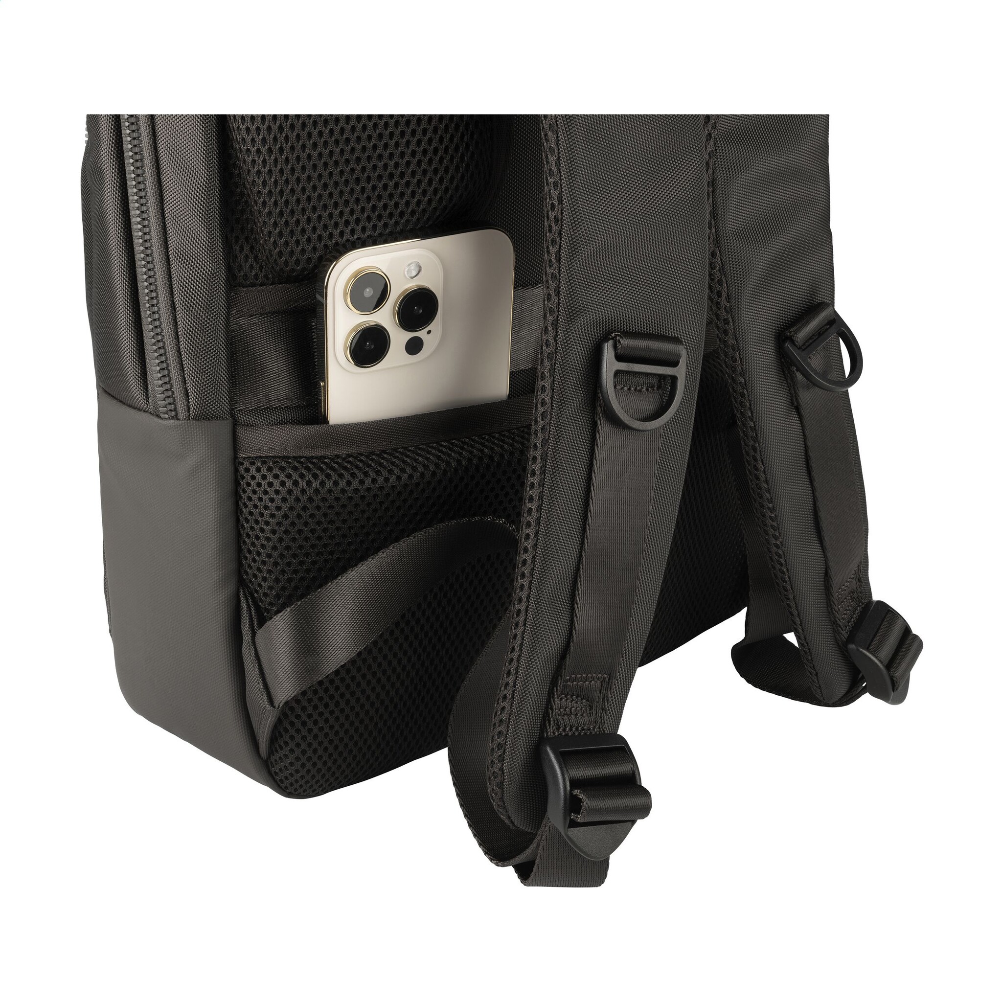 Het ruime hoofdcompartiment is voorzien van een mesh ritsvak en een stootbestendig laptopvak geschikt voor laptops tot 15,6 inch of een MacBook Pro 16”. De voorzijde beschikt over meerdere ritsvakken, waaronder een met twee insteekvakken, perfect voor accessoires die je snel nodig hebt. Aan de achterzijde bevindt zich een verborgen ritsvak voor veilige opslag van persoonlijke items en reisdocumenten.