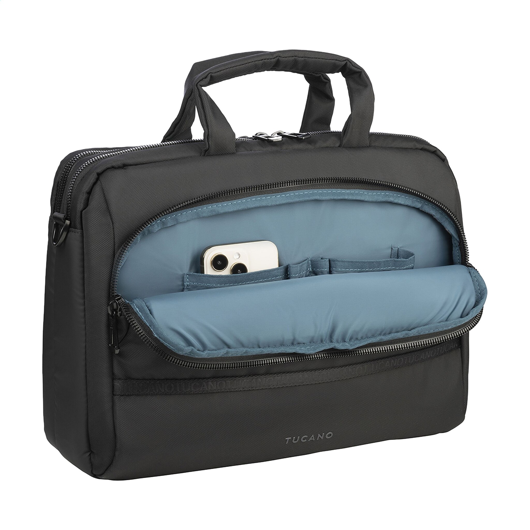 De Tucano Player Laptopbag is volledig gevoerd en ontworpen voor dagelijks gebruik. Met de gewatteerde, verstelbare en afneembare schouderriem draag je de tas comfortabel over de schouder, terwijl de dubbele gewatteerde handgreep zorgt voor extra draaggemak. Met een inhoud van circa 13 liter is dit een compacte en praktische tas voor werk en onderweg.
