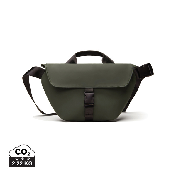De sling bag is vervaardigd uit RCS-gecertificeerd gerecycled polyester in combinatie met PU en bevat zestien procent gecontroleerd gerecycled materiaal volgens de Recycled Claim Standard. Dit garandeert een transparante en duurzame herkomst van de gebruikte materialen. Dankzij het lichte gewicht, de stevige afwerking en de compacte vorm is deze tas perfect voor woon-werkverkeer, stedentrips en casual gebruik. Met zeefdruk transfer is personalisatie helder en duurzaam mogelijk, waardoor de tas verandert in een zichtbare en functionele merkdrager. Ondersteund door onze ervaring sinds 1972 en standaard artikel op voorraad.