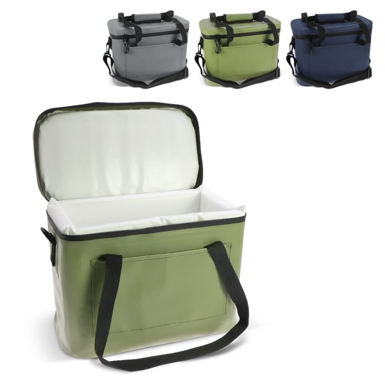 Formaat: 39 x 19 x 24 cm, inhoud: circa 12 liter, materiaal: duurzaam PVC, eigenschappen: waterdicht IPX4, schokbestendig en isolerend, gebruik: outdoor, werk, strand en evenementen, personalisatie: bedrukken met logo mogelijk